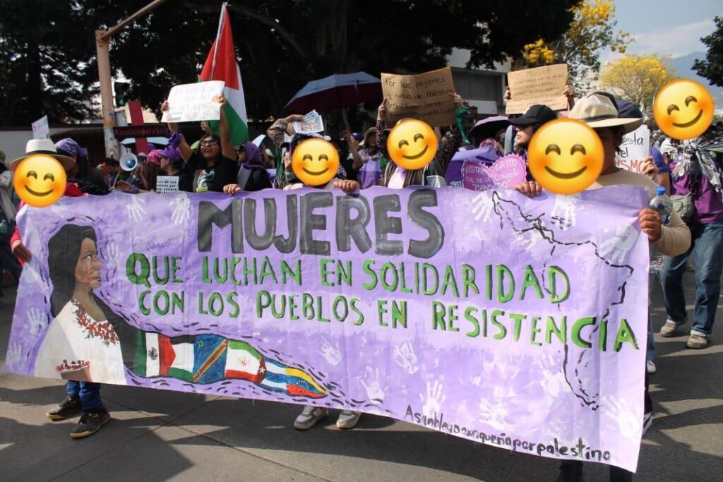 Desde Oaxaca diferentes colectivos y organizaciones convocaron a salir una vez más este 8 de marzo. En primera línea las madres buscadoras y a la retaguardia el contingente por Palestina.