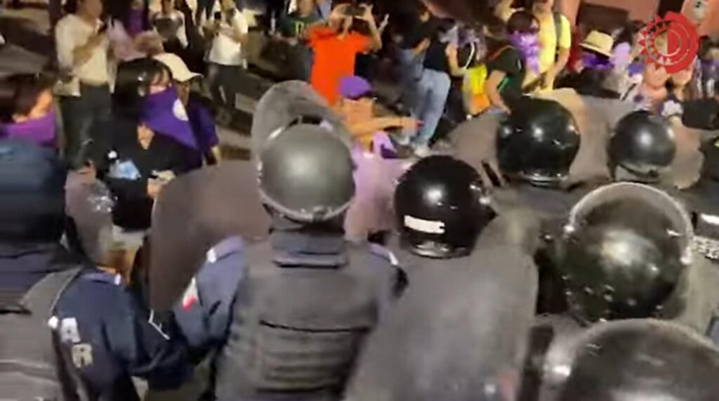 Ante la violencia que ejercieron para desalojar arbitrariamente, no solo a las que estábamos protestando, sino a toda la gente que se encontraba en el Zócalo, nos vimos obligadas a movernos, algun@s en dirección al andador Alcalá que era la salida más cercana, cuando de pronto se escucharon gritos, más personas y compañeras corriendo, pues venía un grupo de granaderos barriendo con todo a su paso. Algunos lograron resguardarse en locales que aún estaban abiertos y al ver la agresión cerraron sus cortinas con los que pudieron meterse.